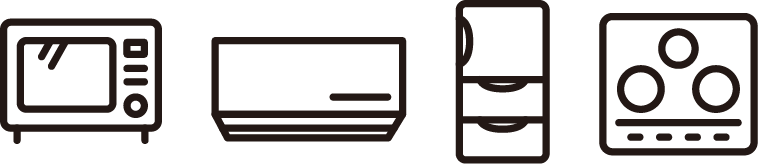 電子レンジ・エアコン・冷蔵庫・IH・テレビ・炊飯器・電気ケトルなど